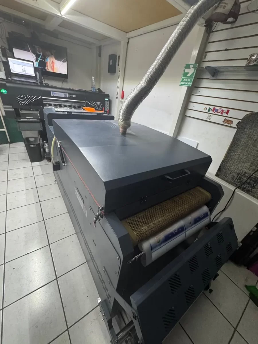 Máquina hibrida con impresión en UV y tinta blanca (imprime en cama plana y en rollo) con salida a 1.80 y vinilies a 1.50  , coroplast , PVC espumado , foam board, stireno, acrilico vidrio , tela máxima de 5 cm de ancho.